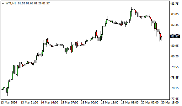 Vývoj ceny ropy WTI (1hodinový graf - H1):