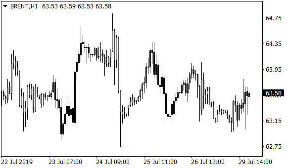 Vývoj ceny ropy Brent (1hodinový graf – H1):