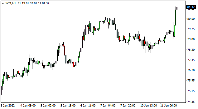 Vývoj ceny ropy WTI (1hodinový graf - H1):