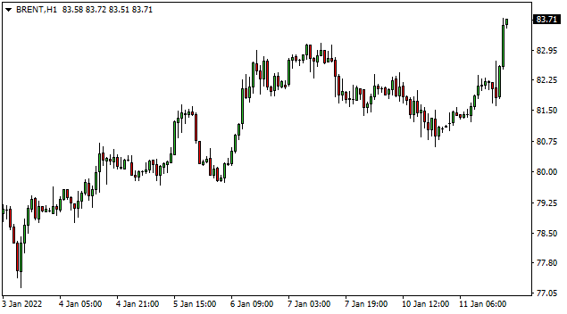 Vývoj ceny ropy Brent (1hodinový graf - H1):