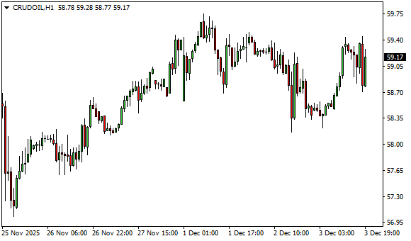 Vývoj ceny ropy WTI (1hodinový graf - H1):