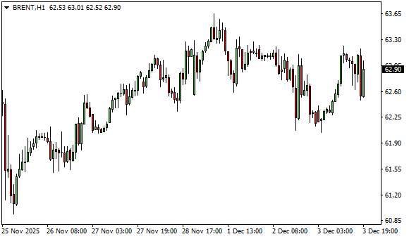 Vývoj ceny ropy Brent (1hodinový graf - H1):