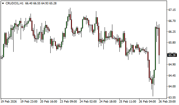 Vývoj ceny ropy WTI (1hodinový graf - H1):