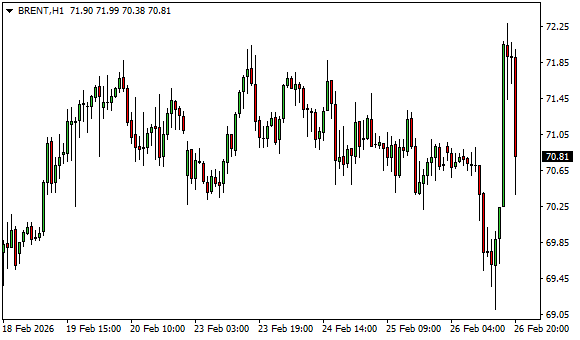 Vývoj ceny ropy Brent (1hodinový graf - H1):
