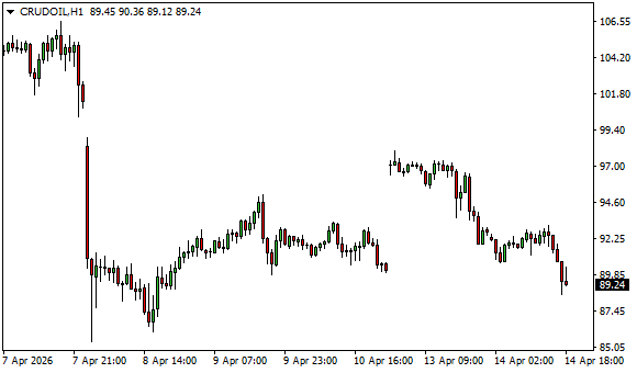 Vývoj ceny ropy WTI (1hodinový graf - H1):