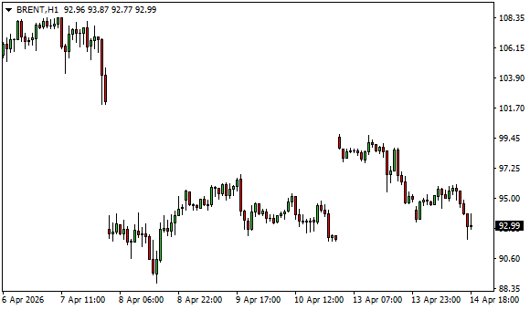 Vývoj ceny ropy Brent (1hodinový graf - H1):
