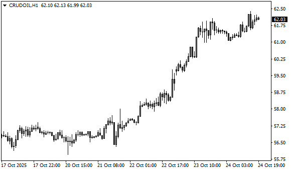 Vývoj ceny ropy WTI (1hodinový graf - H1):