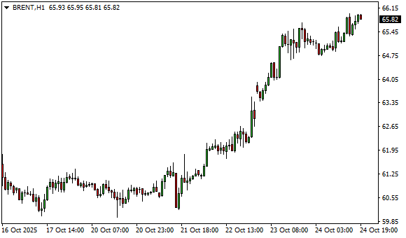 Vývoj ceny ropy Brent (1hodinový graf - H1):