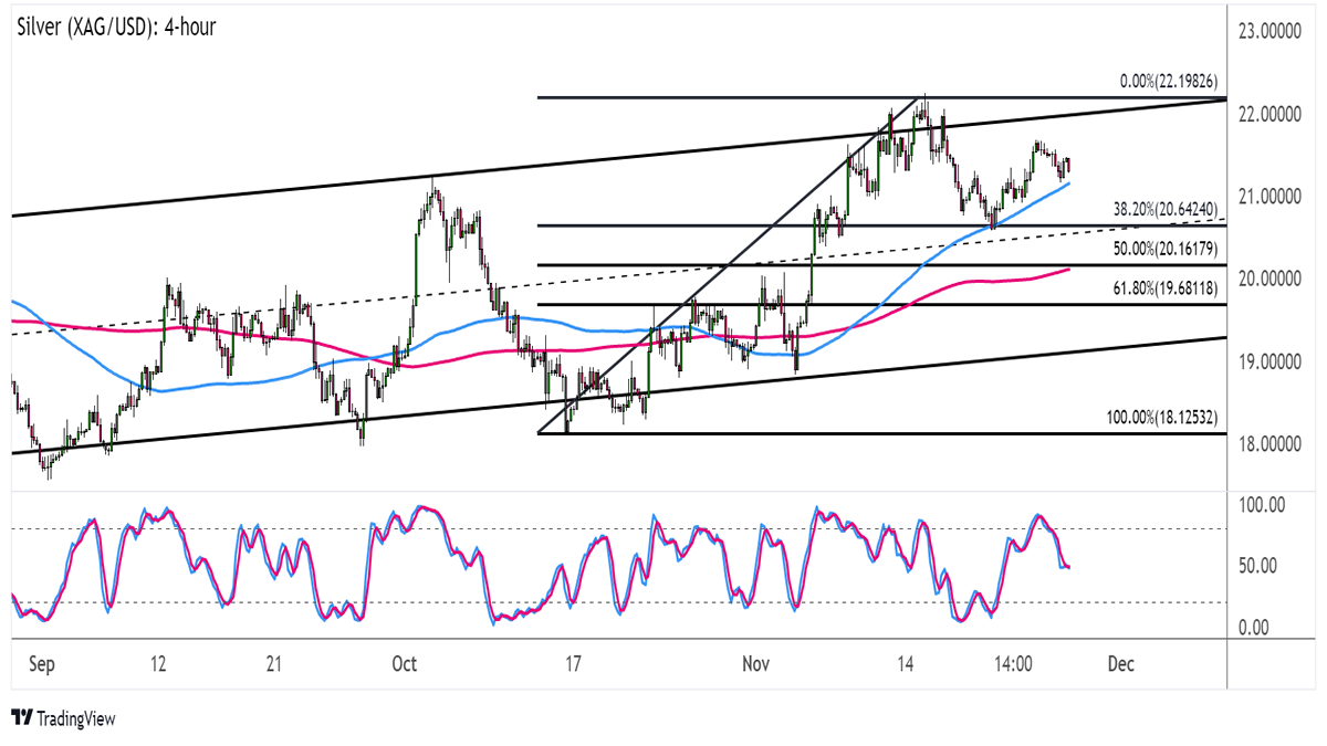 Komodity: Stříbro se obchoduje v rostoucím trendovém kanálu