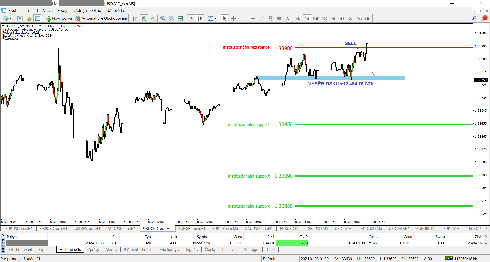 Včerejší obchodní den pro členy VIP zóny nabídl ziskovou obchodní příležitost na měnovém páru USD/CAD. Dle denních expertních výhledů ve VIP zóně došlo na USD/CAD k zasažení institucionální rezistence na mezibankovním trhu na cenové zóně 1.3398-1.3399, o které jsme s dostatečným předstihem ve VIP zóně všechny členy informovali.