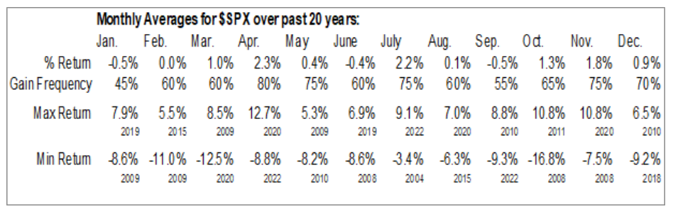 Obrázek č.2: Sezónnost na indexu SP 500. Zdroj: www.charts.equityclock.com