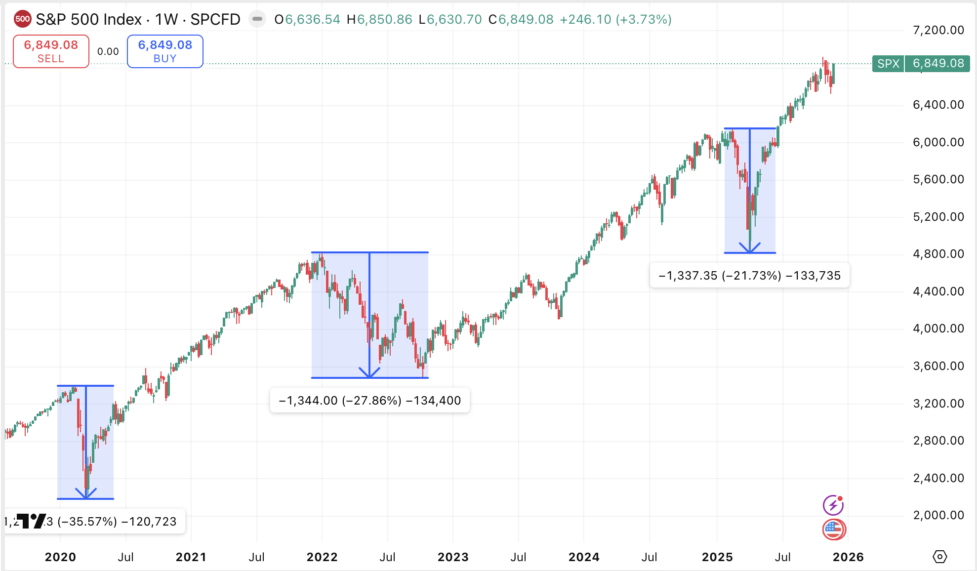 Analytici JPMorgan odhadují, že index S&P 500 na konci roku 2026 dosáhne hranice 7 500 bodů a pokud by americká centrální banka FED pokračovala ve snižování úrokových sazeb, domnívají se, že v roce 2026 by index S&P 500 mohl překonat hranici 8 000 bodů, což představuje téměř 17% růst.
