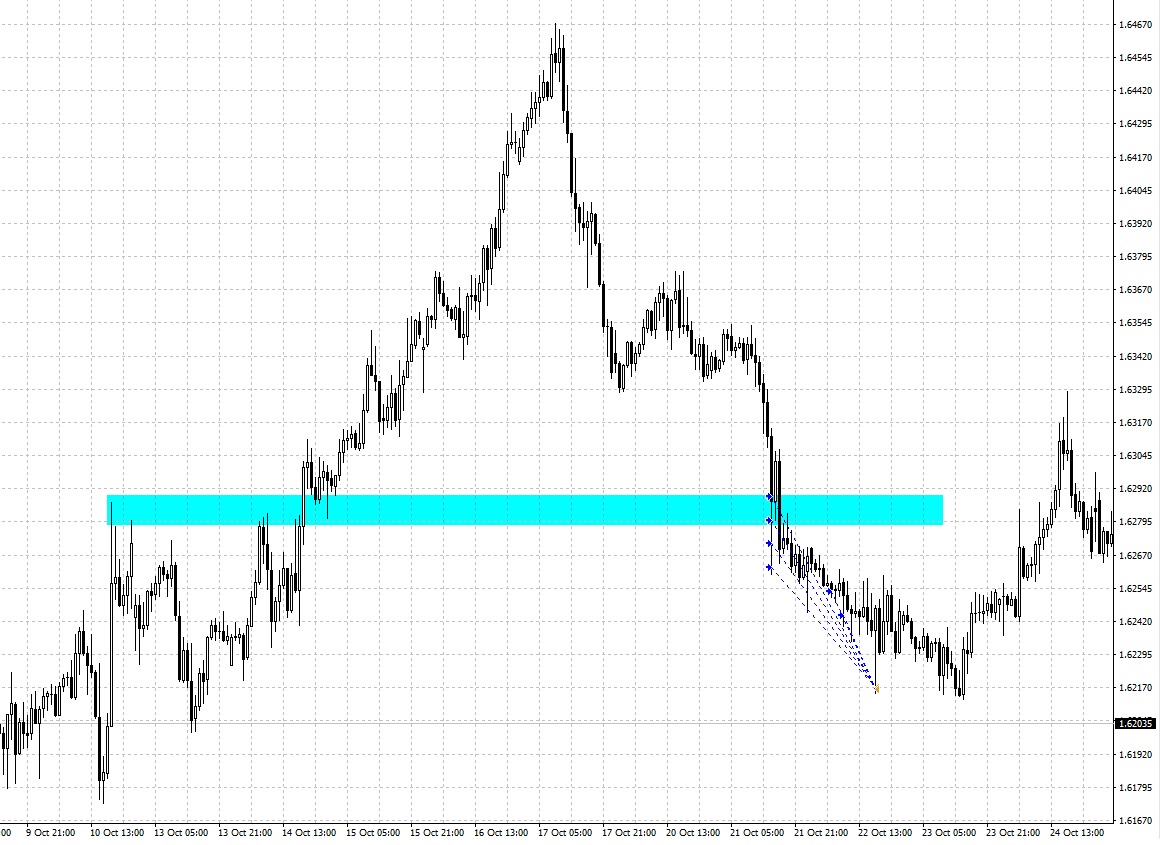 Jak jsem už v úvodu nastínil, v tomto obchodě hrál hlavní roli stop loss. Trh při cenovém poklesu, až na jednu menší nákupní aktivitu v oblasti mého supportu, vůbec nereagoval, support prorazil a pokračoval v downtrendu. Protože proražené cenové výběžky velmi často fungují jako zajímavé supporty, připravil jsem tento obchod s menším stop-lossem, což se nakonec ukázalo jako osudné.