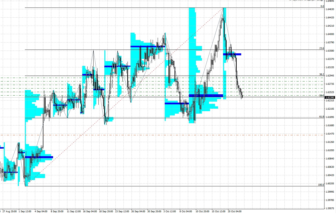 Z technického pohledu tento level vypadá zajímavě. Euru se ovšem příliš nedaří a extrémní zadlužení Evropské Unie donutilo investory přijmout negativní postoj k evropské měně. V současné době trh naplno testuje support, který se vyznačuje výrazným volume profilem. V době psaní článku trh testuje největší volume (point of control) a konfluenční úroveň na základě Fibonacciho retracementu.