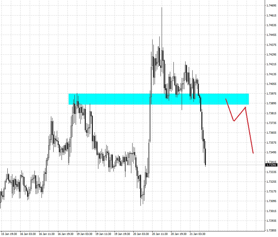 Po velmi agresivním cenovém růstu trh vytvořil nejprve jasné a zřetelné swingové maximum s tím, že poté pod ním začal konsolidovat. Low tohoto postranního trendu bylo vykreslováno zhruba na stejné cenové úrovni, což v trhu vytvořilo krátkodobý support. Ten byl v noci proražen a tak se ze supportu stala rezistence.