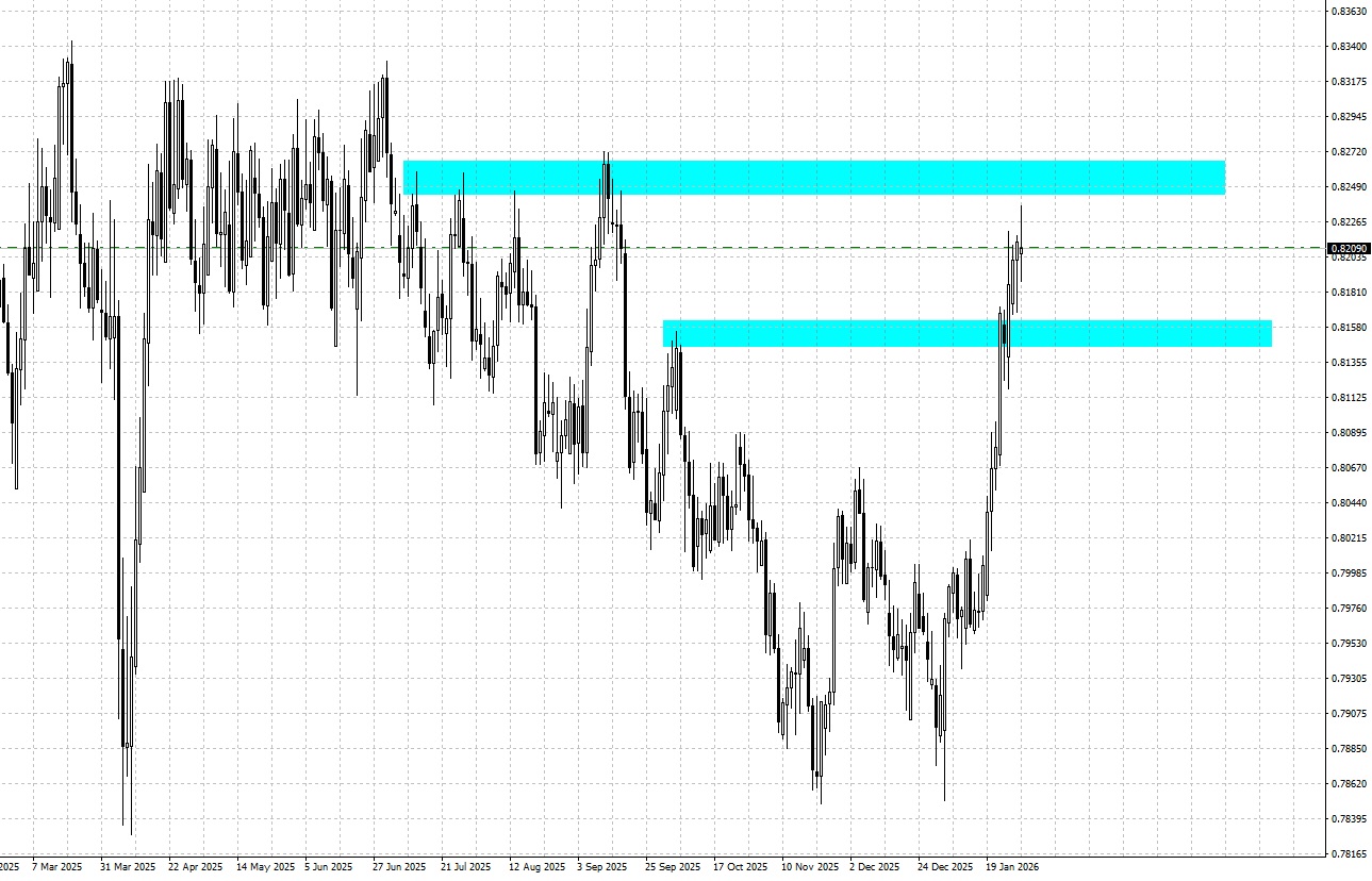 Tento obchod jsem trochu výjimečně realizoval na základě denního grafu. Novozélandský dolar na měnovém páru výrazně posílil vůči kanadskému dolaru a aktuálně se obchoduje již v oblasti cenových maxim z minulosti. Ve vyznačeném cenovém výběžku se nachází i menší rezistence v podobě tržní konsolidace, na kterou měnový pár nyní reaguje prodejní aktivitou.