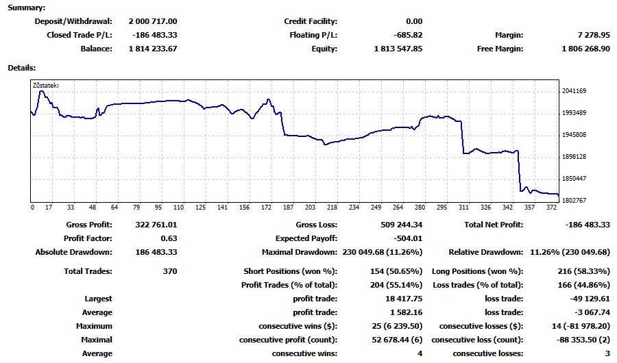 Balance křivka mého obchodního účtu se nachází na svých minimech s tím, že mírně klesá. To je způsobeno výběry malých ztrát a malých zisků v posledních několika týdnech. Druhá část challenge se tedy blíží k hranici, kdy bude velmi složité její negativní vývoj zvrátit. Jak se říká, naděje umírá poslední, takže plán je stále stejný, a to vygenerovat sérii ziskových obchodů, díky kterým budu moci navýšit riziko a tak se snad ještě vrátit do hry o záchranu této druhé fáze challenge.