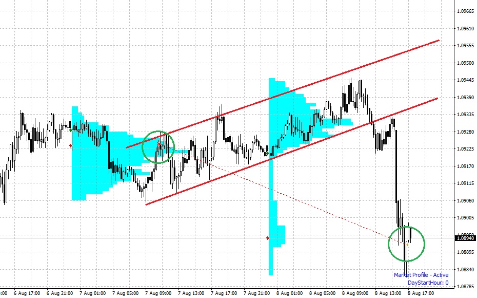 Druhý obchod na měnovém páru EUR/USD již neměl tak hladký průběh jako ten předchozí. Hlavní myšlenkou short obchodu byla v zde spekulace na retest rezistence s volume, kdy jsem očekával pullback na vyšší hodnoty a následně pokračování down trendu. Tento scénář se sice nakonec vyplnil, ale ovšem ne tak, jak jsem očekával.