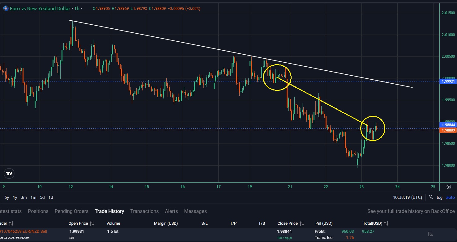 Tento long obchod skončil ve ztrátě. Šlo o obchod, který byl hlavním důvodem, proč jsem oba obchody ukončil. Britská libra totiž začala posilovat mnohem víc než novozélandský dolar, což minimalizovalo otevřený zisk.