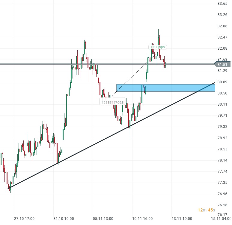 Na obrázku níže je vyobrazen můj poslední obchod na emisních povolenkách, kde jsem spekuloval na jejich cenový růst. Vzhledem k tomu, že se dlouhodobě obchodují v up trendu, tak jsem zde otevíral obchod na hodnotě předchozího cenového maxima. Toto maximum trh prorazil, díky čemuž se z rezistence stal support, což je nesmrtelný princip technické analýzy.