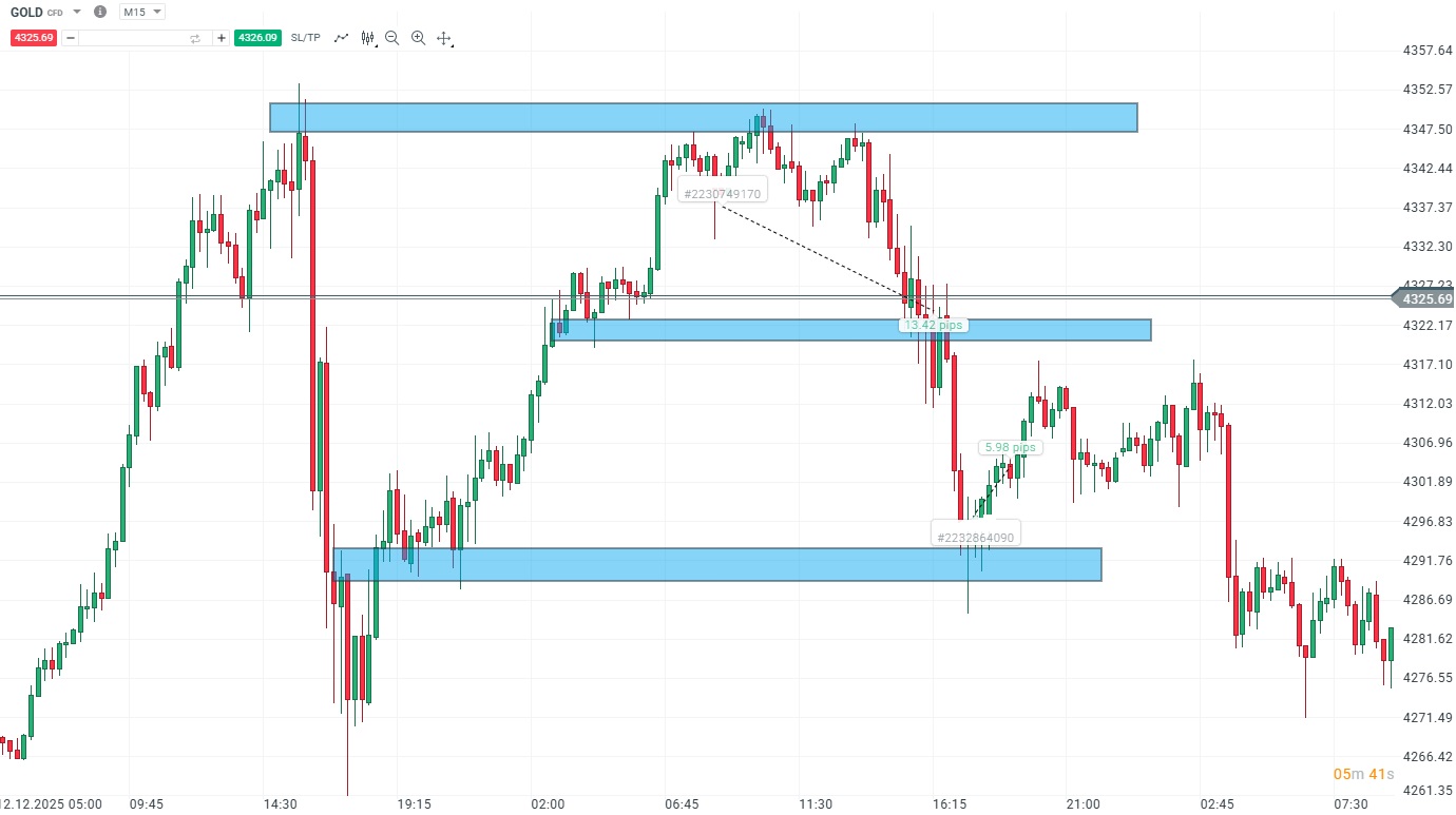 Zlato během jednoho obchodního dne nabídlo dvě zajímavé příležitosti, a to jak ve směru long, tak i short. Popravdě nemám příliš rád otevírání opačné pozice ihned po realizaci zisku, nicméně v tomto případě cenová struktura působila velmi kvalitně a přesvědčivě naznačovala svůj další cenový pohyb.