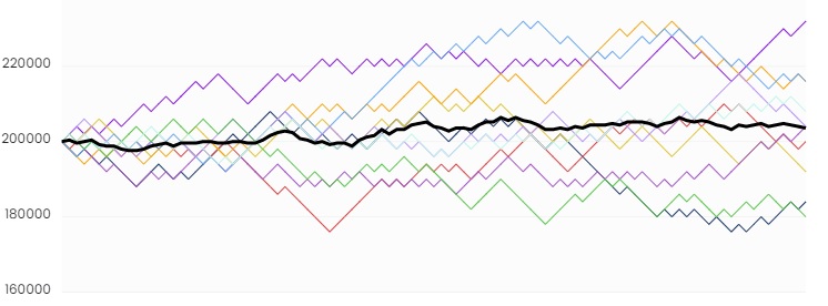 Jedná se o takového obchodníka, který ve své kariéře již zažil období zisku, které bylo ovšem doprovázeno obdobími ztrát. Equity křivka takového Obchodníka by mohla vypadat například takto: