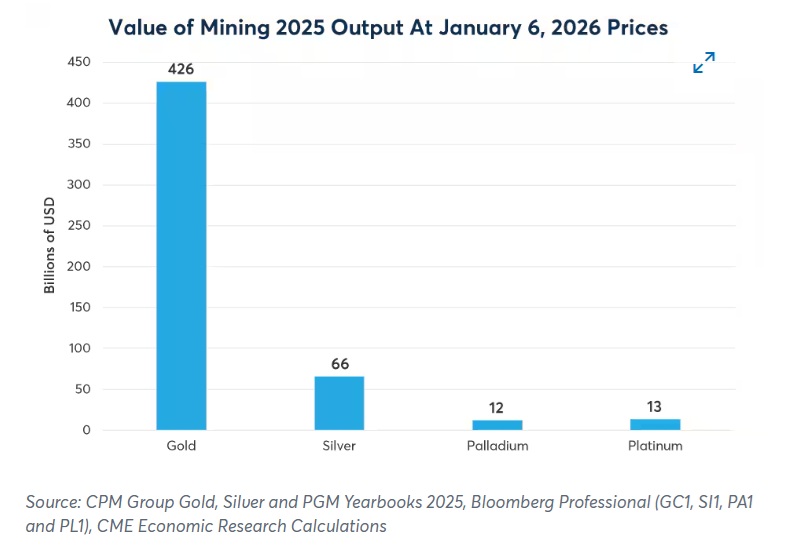 Dolarové vyjádření produkce je u zlata 35násobek hodnoty produkce platiny: