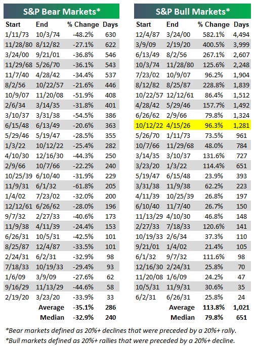 Skutečně, po poslední korekci indexu S&P 500 o 9,1 % (od konce ledna do konce března) trval návrat na nová maxima jen 11 obchodních seancí. V případech drawdownu indexu v intervalu 5–10 % jde o nejrychlejší zotavení za posledních 100 let. Pokud se má stávající býčí trh stát nejdelším v historii, musí zhodnocování pokračovat bez propadu o 20 % a více až do února 2035 (na grafu žlutě současný býčí trh od konce roku 2022).