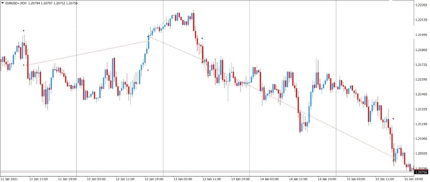 Uplynulý týden byl docela klidný. V pondělí se aktivoval pouze short, který částečně odprodal a ačkoliv potom ještě dlouho dával naději pro cestu k Take-Profitu (TP), nakonec skončil v úterý večer na přitaženém Stop-Lossu (SL). Vzhledem k tomu, že jsem na základě prosincových výsledků trochu upravil money management, skončil obchod v docela přijatelném zisku. Když se potom v úterý večer aktivoval long, a skončil podobným způsobem, jako pondělní short, tak už to začalo dávat docela pěkný výsledek. Nicméně ten byl potvrzený až po otevření dalšího shortu ve středu, který až do konce týdne klesal k nastavenému TP. Ve čtvrtek sice došlo k docela velké korekci, nicméně cena už byla hodně daleko od přitaženého SL a tak nedošlo k jeho zasažení. To se následně ukázalo jako rozhodující pro úspěch celého obchodu.