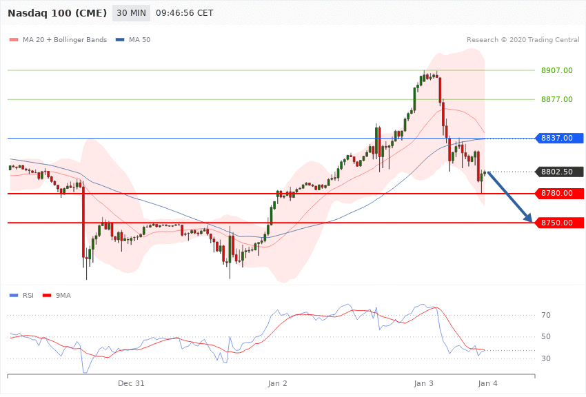 NASDAQ 100 - Intradenní výhled 3.1.2020