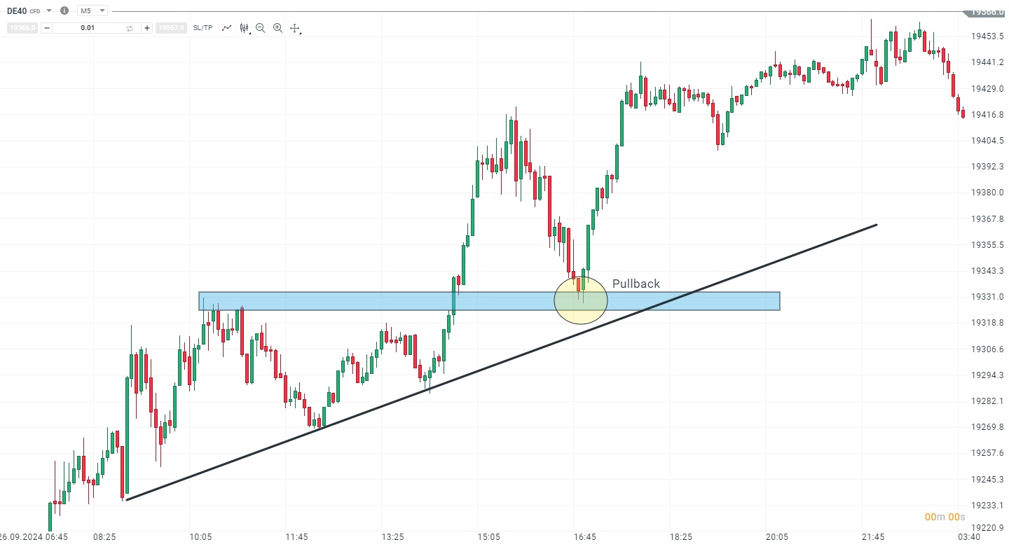 Jasný zářijový uptrend mohli obchodníci využít ke tvorbě zisku i na německém akciovém indexu Dax. Tento trh se obchodoval nad hodnotou rostoucí trendové čáry, takže si obchodníci mohli jen počkat na její test a v rámci konzervativního vstupu do trhu se mohli zúčastnit nákupní rally. Nevýhodou tohoto obchodu však mohlo být výraznější oslabení trhu na hodnotu supportu, nicméně i zde platí „trend is your friend“.
