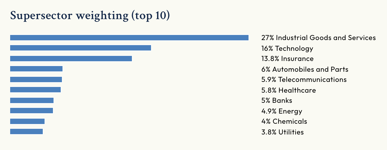 Index DAX je silně zaměřený na průmysl, kde indexu dominují Siemens či Rheinmetall. Významné zastoupení v indexu mají i technologie, které reprezentuje například SAP či finanční sektor, kde najdeme jména jako Allianz či Deutsche Bank.
