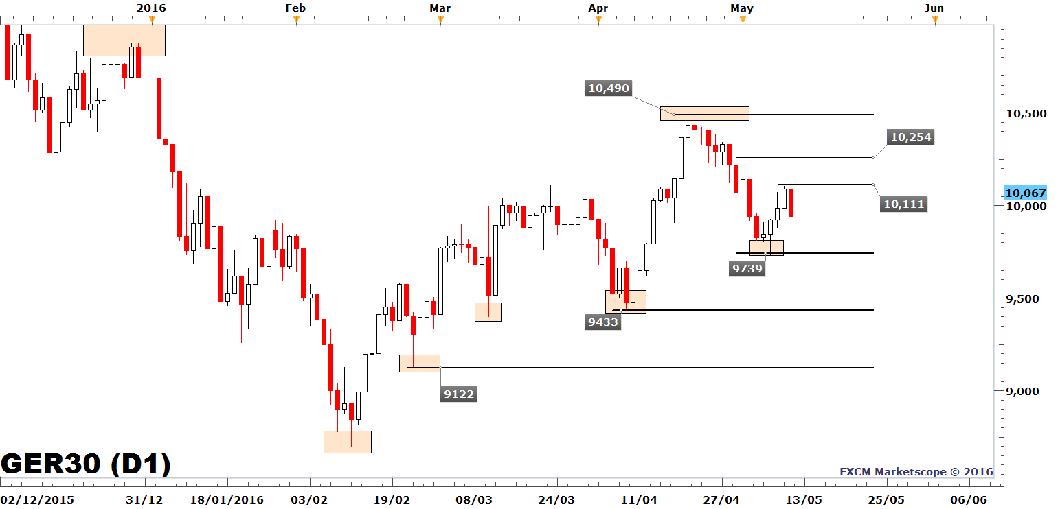 Naopak krátkodobou rezistenci tvoří maximum z 10. května na hladině 10 111, po které následuje rezistence v podobě maxima z 29. dubna na hladině 10 254. Několikatýdenní rezistence pak leží na hladině 10 490, což je maximum z dubna.