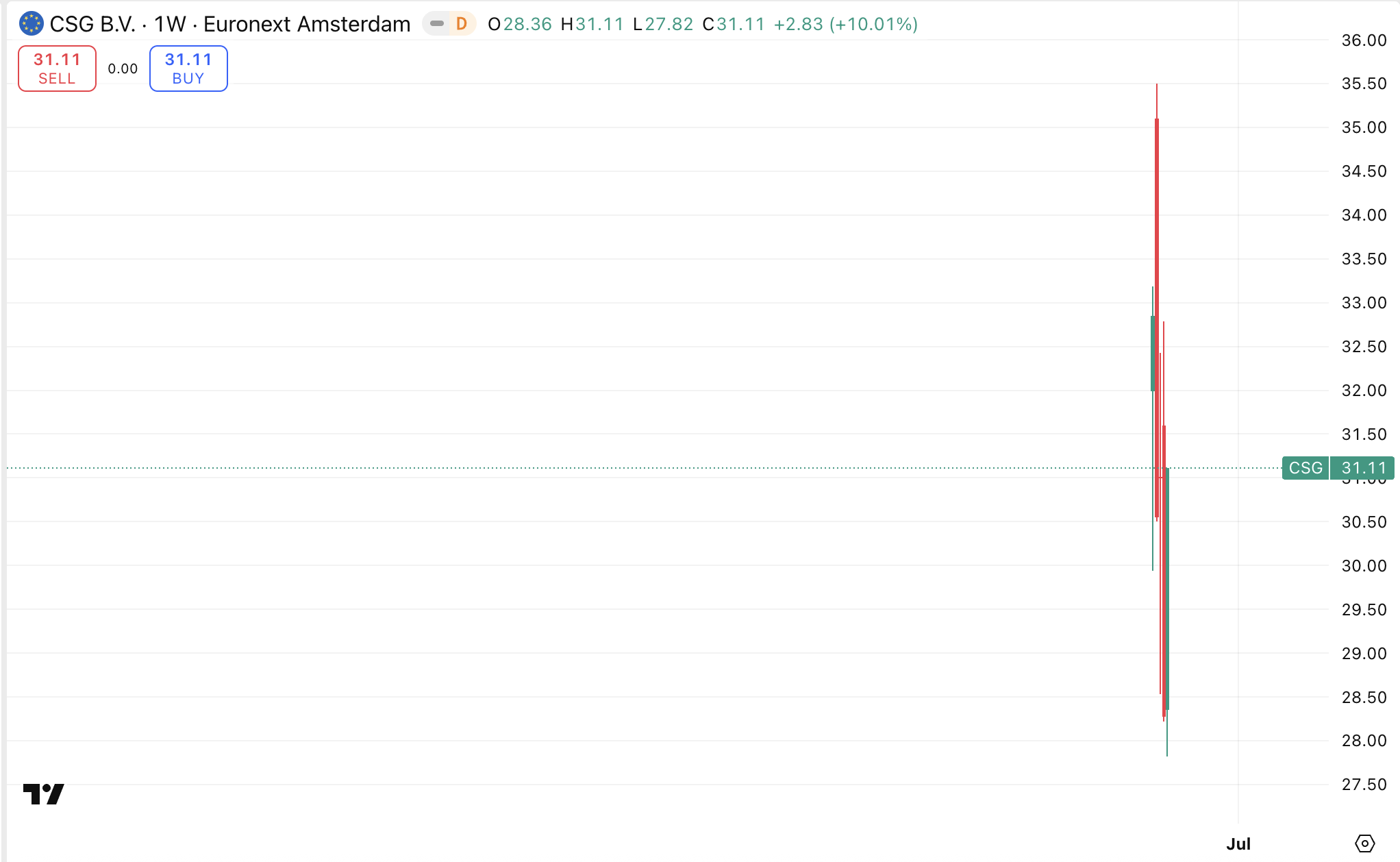 První obchodní den, 23. ledna 2026, akcie výrazně rostly až na 35,50 EUR. Následující dny však část zisků odevzdaly a aktuálně se obchodují kolem 31 EUR. Tento vývoj ilustruje typickou volatilitu nových emisí, kdy se trh postupně snaží najít rovnovážnou cenu. Akcie CSG jsou vedle Amsterdamu obchodovány také na Burze cenných papírů Praha.