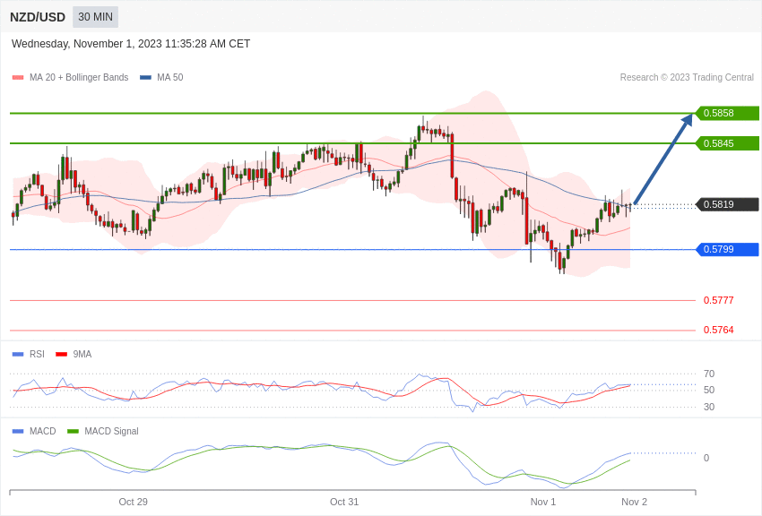 Preferovaný scénář: Dlouhé (long) pozice nad 0,5799 s cílem na 0,5845 a dále pak až na 0,5858.