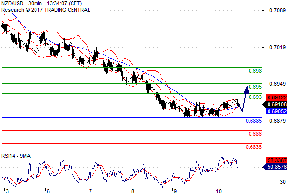 Preferovaný scénář: Dlouhé (long) pozice nad 0,6885 s cílem na 0,6930 a dále pak až na 0,6950.
