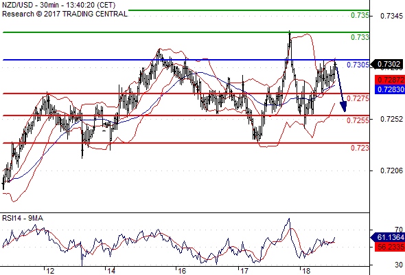 Preferovaný scénář: Krátké (short) pozice pod 0,7305 s cílem na 0,7275 a dále pak až na 0,7255.
