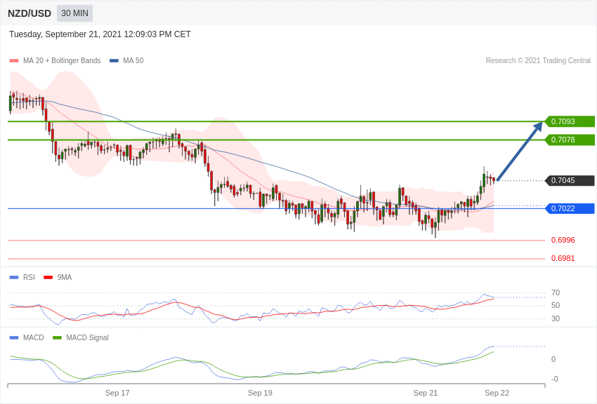 Preferovaný scénář: Dlouhé (long) pozice nad 0,7022 s cílem na 0,7078 a dále pak až na 0,7093.