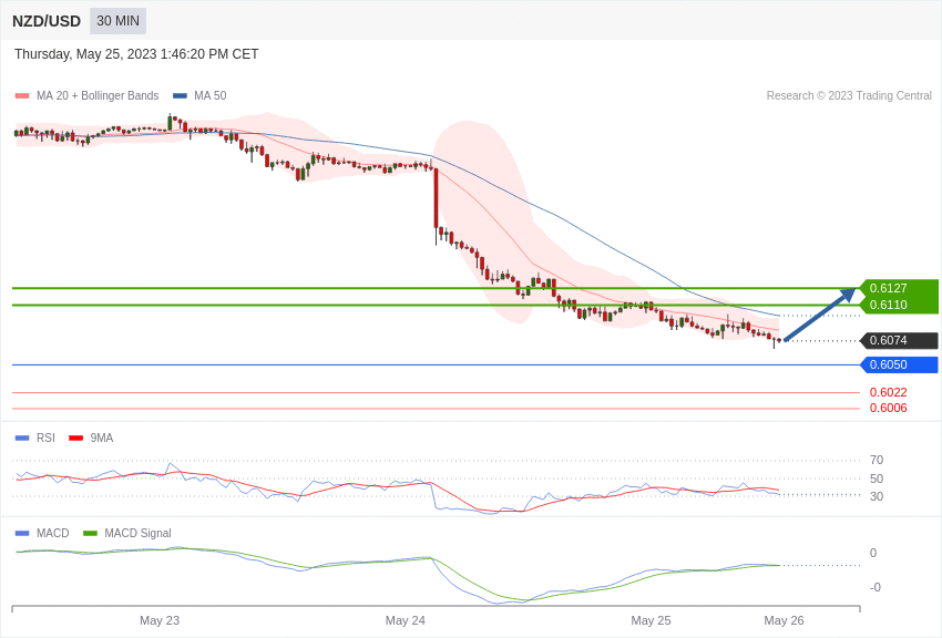 Klíčová slova: Intradenní výhled | NZD/USD | Indikátor | Long | Pozice | RSI | Rezistence | Trading | USD | NZD | Pivot | Trading Central | Supporty a rezistence | Výhled | Pokles | Indikátor RSI | Dlouhé (long) pozice |