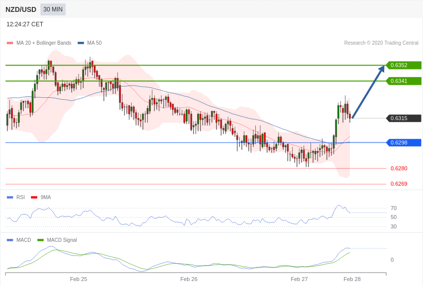 Preferovaný scénář: Dlouhé (long) pozice nad 0,6298 s cílem na 0,6341 a dále pak až na 0,6352.