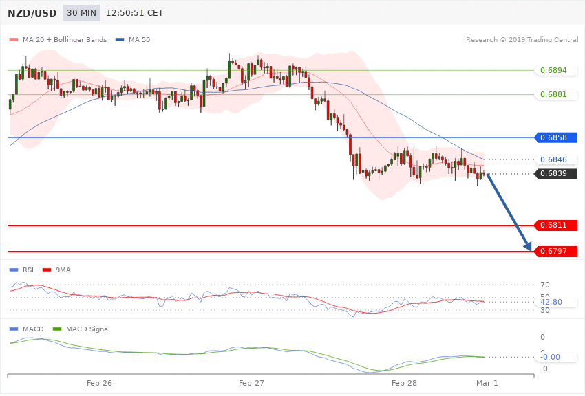 Alternativní scénář: Nad 0,6858 je pravděpodobný růst na 0,6881 a dále pak až na 0,6894.