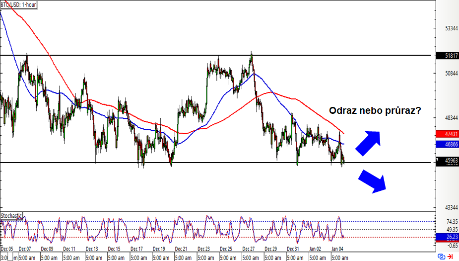 Obchodujeme kryptoměny: BTC/USD (Bitcoin) - technická analýza 5.1.2022