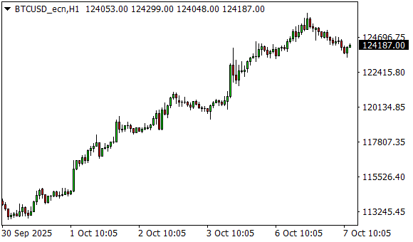Vývoj ceny bitcoinu (1hodinový graf - H1):