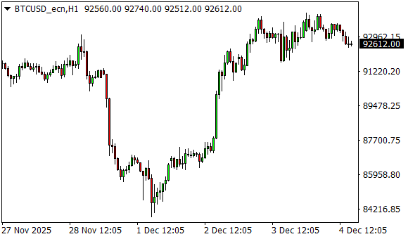 Vývoj ceny bitcoinu (1hodinový graf - H1):