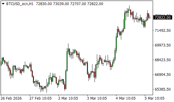 Vývoj ceny bitcoinu (1hodinový graf - H1):
