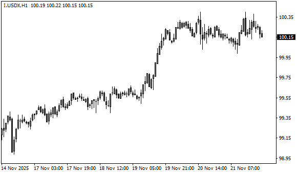 Vývoj dolarového indexu USDX (1hodinový graf - H1):