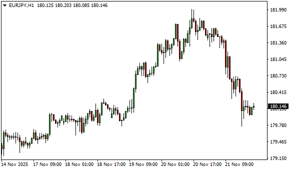 Vývoj měnového páru EUR/JPY (1hodinový graf - H1):