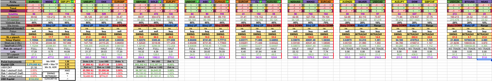 (Ukázka mé staré trading tabulky s 27 sledovanými instrumenty).