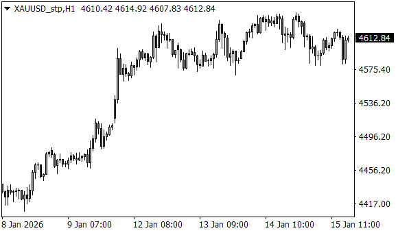 Vývoj ceny zlata (1hodinový graf - H1):