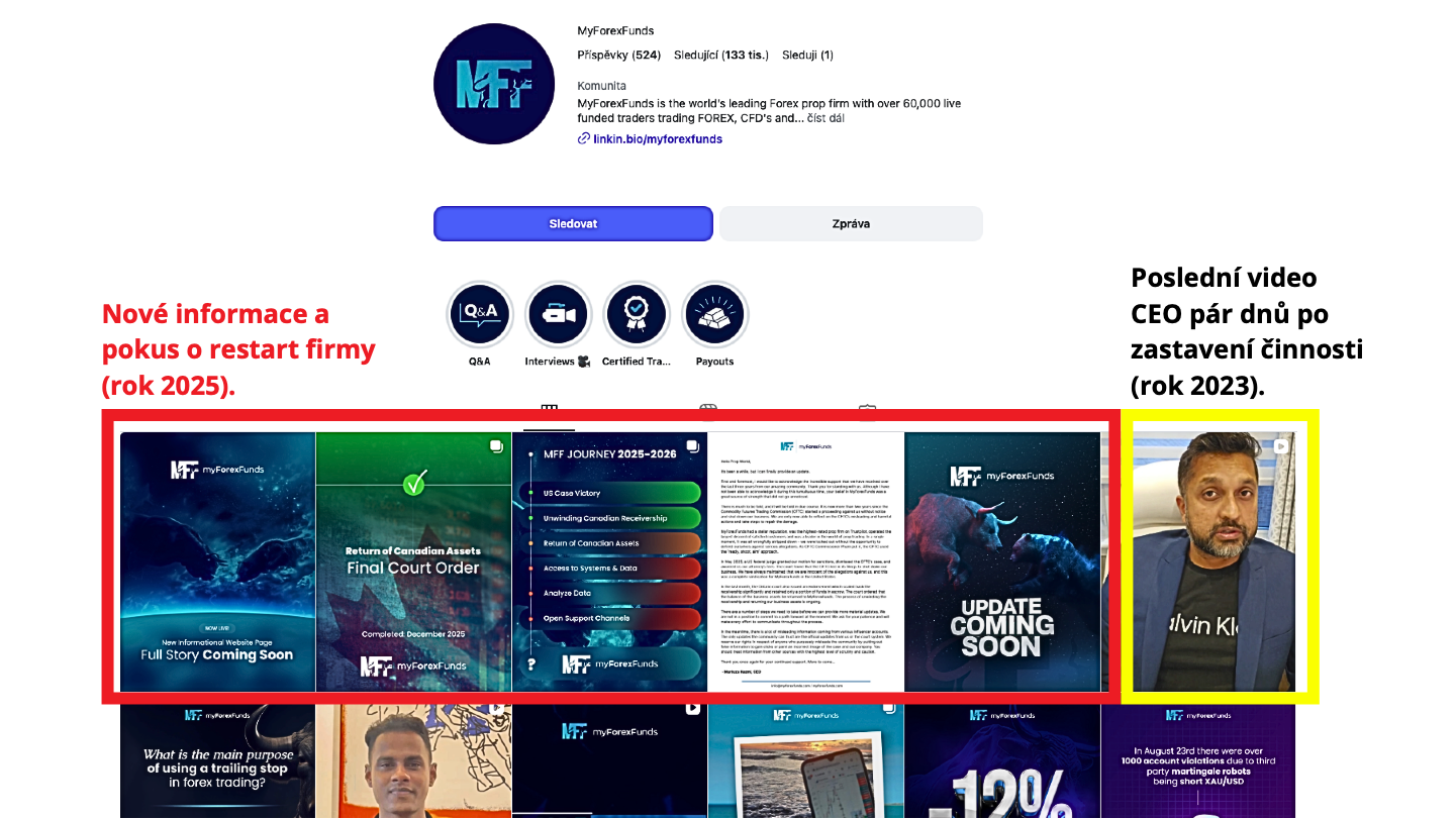 Pokud si to shrneme, tak aktuální situace je pro MFF příznivá. Firma se pokouší o nový restart, získání důvěry a začala podnikat kroky na svých sociálních sítích k tomu, by se znova dostala do povědomí. Na sociálních sítích přidali vlastní road mapu, kde před pár týdny oznámili, že vrchní soud v Ontariu schválil kanadský příkaz k předání aktiv. Firma uvádí, že nyní pracuje na znovuzískání plné kontroly nad aktivy, daty a interními systémy. Současně chce začít znovu skládat tým a následně provést detailní analýzu a provozní revizi, které mají připravit další restart a novou kapitolu pro společnost i její globální komunitu traderů. Jestli se jim znova podaří se dostat mezi TOP 2 globálních prop firem a konkurovat FTMO ukáže čas a důvěra traderů, kteří u nich v minulosti přišli o peníze a účty.